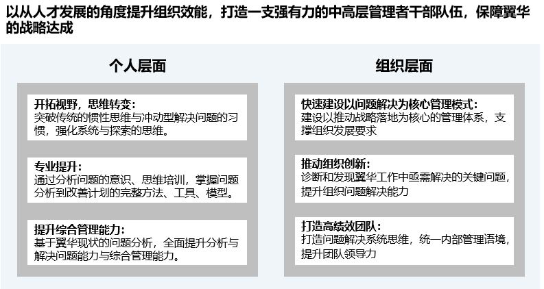 傳統(tǒng)的此類課程側重于定性的描述策略,此次課程吸收國際先進企業(yè)經(jīng)驗,融合本土企業(yè)實踐,著重從問題分析的思維方式及方法入手,依靠結構化的方法和可視化工具,在此基礎上全面解決問題,提升企業(yè)績效,不斷改善管理效能。